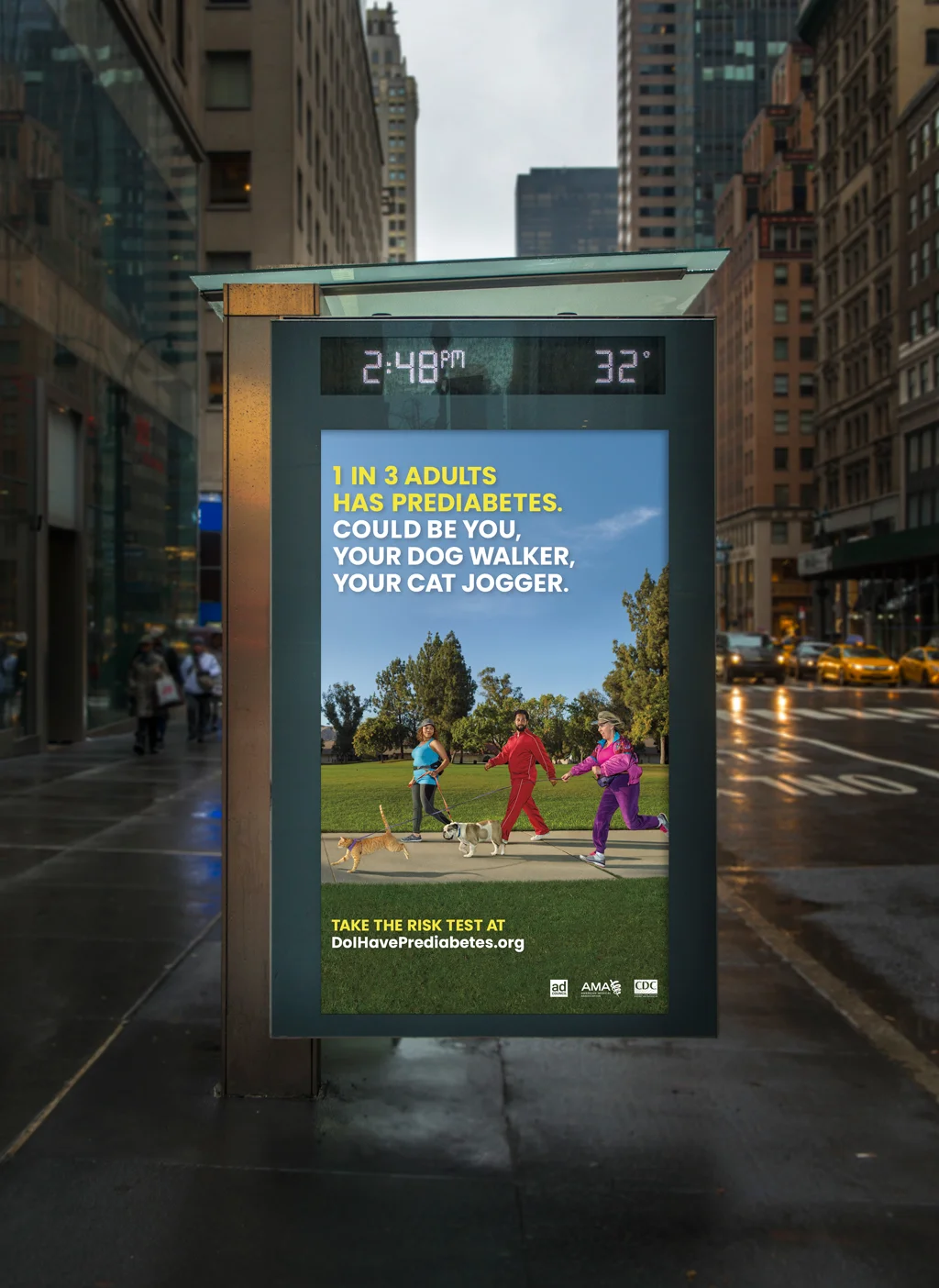We made a campaign for the Ad Council highlighting this 1 in 3 prediabetes statistic. In addition to television spots, we also shot a print/OOH campaign, recorded radio, and updated their website. We worked with directors Terri Timely, of Geico fame, for the television spots; for the stills portion, we worked with photographer Chris Buck.
